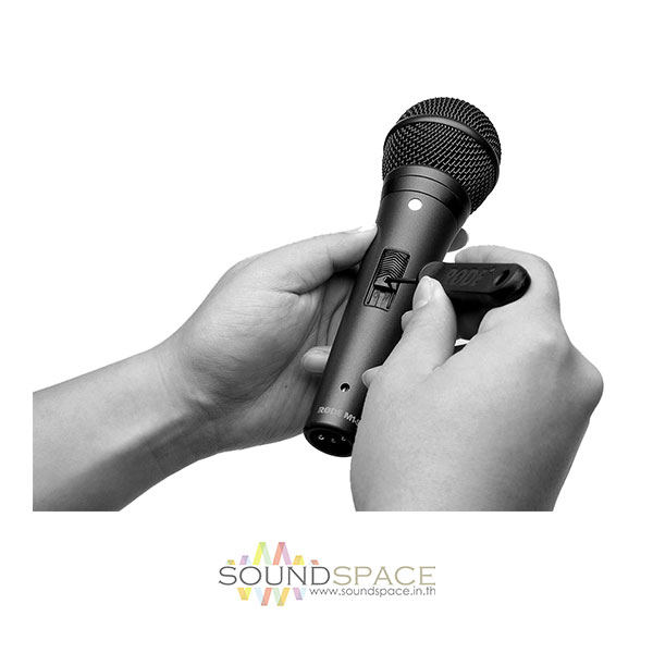 ไมโครโฟน Rode M1S ไมค์สำหรับร้องเพลงหรือพูดแบบมี switch on-off ชนิดไดนามิคไมค์ มีรูปแบบการรับเสียงแบบ cardioid ตอบสนองความถี่ 75Hz – 18kHz, Output Impedance 320Ω,
