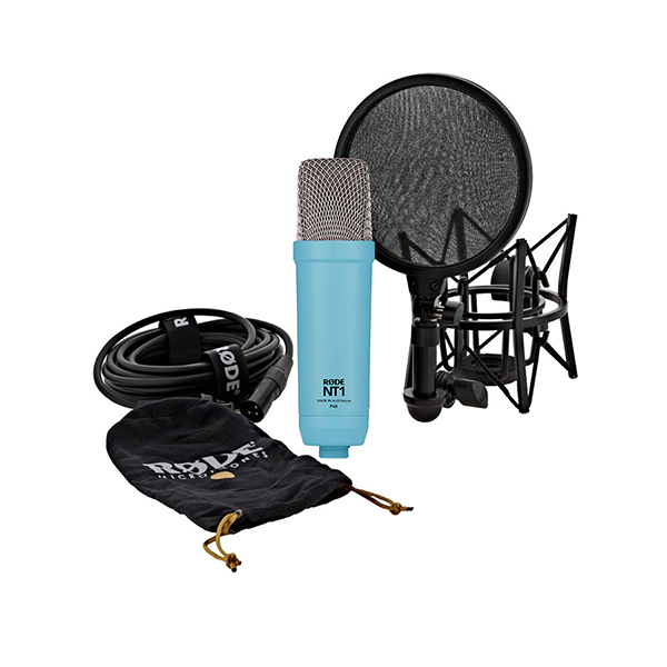 ไมค์บันทึกเสียง Rode NT1 Signature (Blue) สีฟ้า Low-noise Large-diaphragm Cardioid Condenser Microphone with 3-pin XLR Output, SM6 Combination Shockmount Pop Screen, and XLR Cable, For Recording and Podcasting