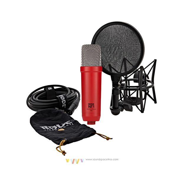 ไมค์บันทึกเสียง Rode NT1 Signature (Red) สีแดง Low-noise Large-diaphragm Cardioid Condenser Microphone with 3-pin XLR Output, SM6 Combination Shockmount Pop Screen, and XLR Cable, For Recording and Podcasting