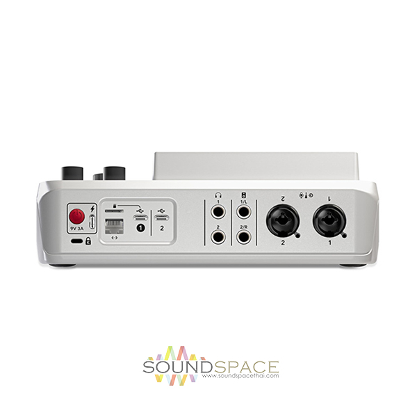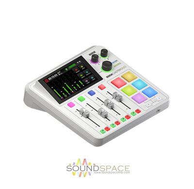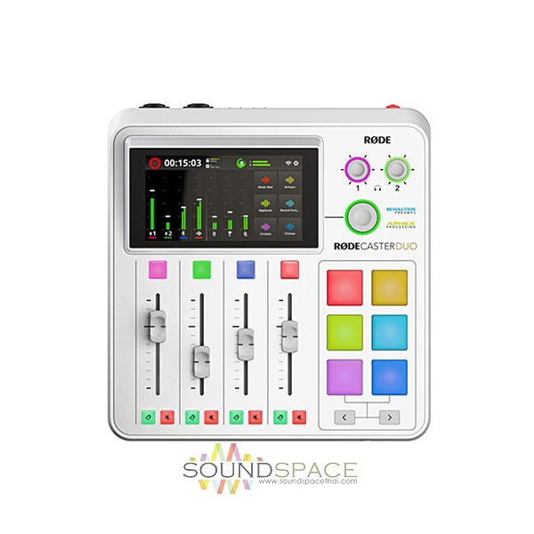 เครื่องผสมเสียงสำหรับงาน Podcasters, Streamers RODECaster Duo แบบสีขาว, 2 High-End Mic/Line/Instrument Preamps, 4 Faders and Vibrant Color Touchscreen, Multitrack Recording to microSD or USB, Advanced Bluetooth® connectivity