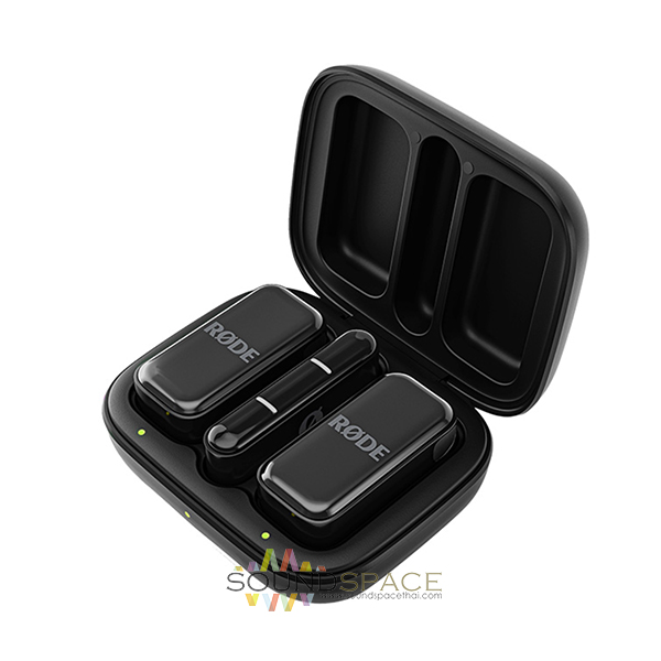 ชุดไมค์ลอยโทรศัพท์ Lightning Connector RODE Wireless Micro แบบไมค์คู่ 2 ตัว, 2-Person Interviews, Vlogs & Podcasts, Built-In Omnidirectional Microphones, Intelligent GainAssist Technology, พร้อมกับแบตเตอร์รี่ที่ใช้งานได้ต่อเนื่องสูงสุดถึง 18 ชั่วโมง สีดำ