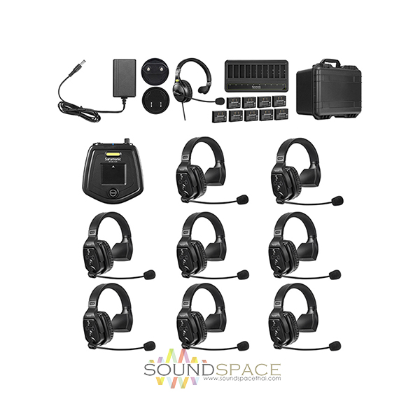 ชุดหูฟังพร้อมไมค์สำหรับ 9 ท่าน Saramonic WiTalk WT5D (9S Kit) เป็นระบบ Intercomและชุดหูฟัง (single-ear) ไร้สายสื่อสารแบบสองทาง, ในชุดประกอบไปด้วย  ชุดหูฟังหลัก Master Headset 1 ชุด, ชุดหูฟัง Remote Headset 8 ชุด, ครอบคลุมระยะได้ไกลสูงสุด 400 เมตร