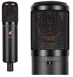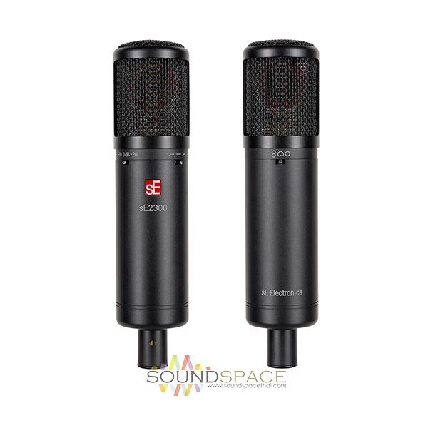 ไมโครโฟนบันทึกเสียง sE Electronics sE2300 เป็นไมโครโฟนแบบ Large-diaphragm Condenser มีรูปแบบการรับเสียง Cardioid, Omnidirectional, Figure-8, with 80/160Hz Highpass Filter and 10/20dB Pad, ตอบสนองความถี่ 20 Hz to 20 kHz, Includes Shockmount, Includes Metal Pop