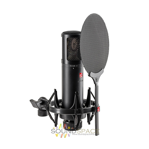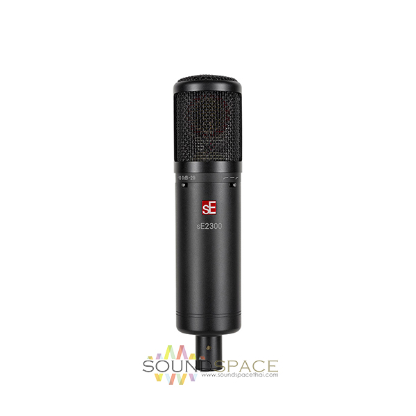 ไมโครโฟนบันทึกเสียง sE Electronics sE2300 เป็นไมโครโฟนแบบ Large-diaphragm Condenser มีรูปแบบการรับเสียง Cardioid, Omnidirectional, Figure-8, with 80/160Hz Highpass Filter and 10/20dB Pad, ตอบสนองความถี่ 20 Hz to 20 kHz, Includes Shockmount, Includes Metal Pop Filter