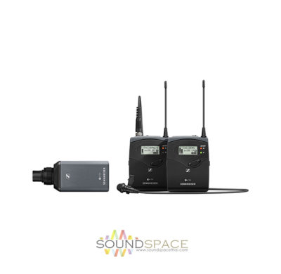 ชุดไมค์ลอยแบบหนีบปกเสื้อและแบบ Plug-On สำหรับกล้อง Sennheiser ew100 ENG G4 ในชุดประกอบด้วย เครื่องรับ EK100 G4 Camera-Mountable Receiver, เครื่องส่ง SK 100 G4 Bodypack Transmitter, ไมโครโฟน ME4 Cardioid Clip-On Lavalier Mic, และ SKP 100 G4 Plug-On Transmitter