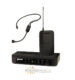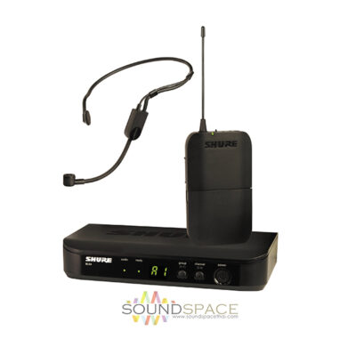 The BLX14/P31 Headset Wireless Microphone System from Shure includes a BLX4 single-channel wireless receiver, a BLX1 bodypack transmitter, and a PGA31 headset mic. The system is set to Shure’s J10 frequency band and operates between 584 – 608 MHz.