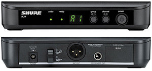 Its front-panel dual-color LED status indicator displays green for normal levels and red when clipping for fast metering. It has an XLR output in additional to an instrument level ¼” output. The BLX4 can be used with up to 11 other compatible systems simultaneously per frequency band.
