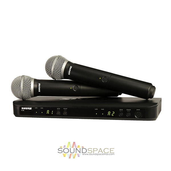 ไมค์ลอยแบบไมค์คู่ 2 ตัว ความถี่ใหม่ถูกต้องตามข้อกำหนดของ กสทช SHURE BLX288A/PG58-Q12 ประกอบด้วย เครื่องรับสัญญาณไมค์ BLX88 Dual wireless receiver 1 เครื่อง, เครื่องส่งสัญญาณ BLX2/PG58 (ไมโครโฟนไร้สาย SHURE หัวไมค์เป็นรุ่น SHURE PG58) 2ตัว
