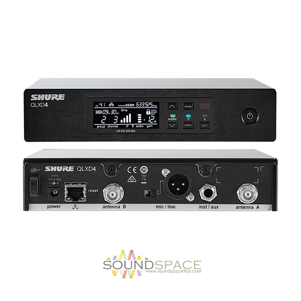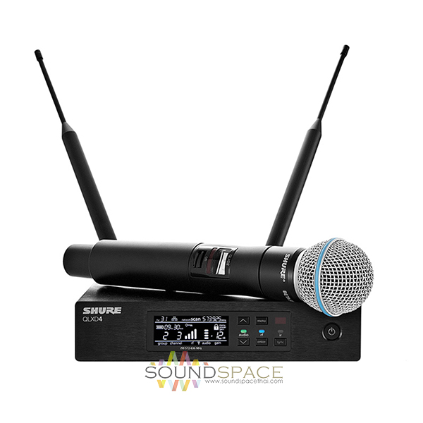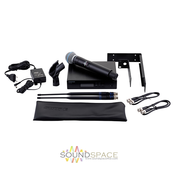 ชุดไมค์ไร้สายแบบมือถือชนิดไมค์เดี่ยว Shure QLXD24A/B58 M19 (694-703 MHz) ในชุดประกอบด้วยเครื่องรับสัญญาณไมค์ QLXD4 receiver 1 ตัว, เครื่องส่งสัญญาณ QLXD2 Transmitter with BETA58 capsule (ไมโครโฟนไร้สาย SHURE 1 ตัว หัวไมค์เป็นรุ่น BETA58)