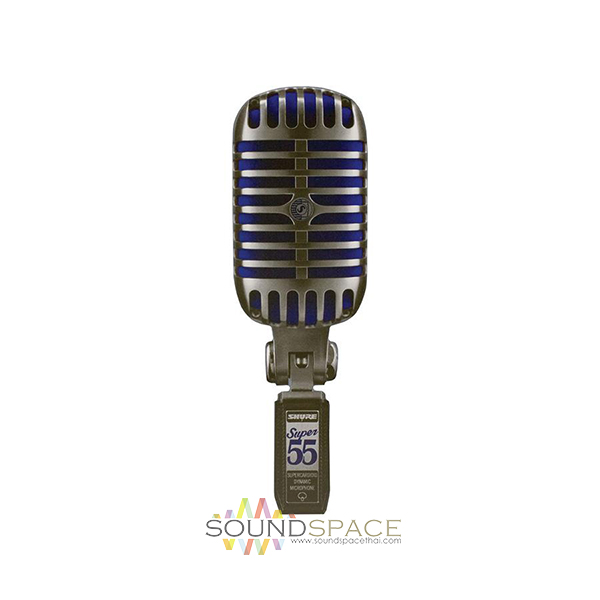 ไมโครโฟนยุค 50-60 แบบคลาสสิค SHURE SUPER55 เป็นไมค์แบบ Dynamic Microphone รูปแบบการรับเสียง Supercardioid Polar Pattern, ตอบสนองความถี่ 60 Hz to 17 kHz, Slight Presence Boost, High Immunity to Feedback, XLR 3-Pin Connector, Self-Tensioning Swivel Mount