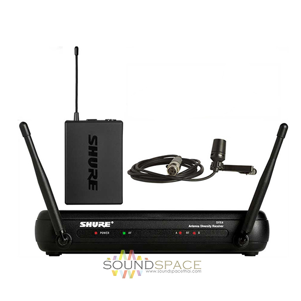 ชุดไมค์ลอย SHURE SVX14A/CVL ไมค์ไร้สายแบบหนีบปกเสื้อ เป็นรุ่นล่าสุดที่มีคลื่นความถี่ UHF ถูกต้องตามกฎหมายใหม่จาก กสทช.ภายในชุดประกอบด้วย เครื่องรับ SVX4 แบบ 1 แชนแนล 1 เครื่อง, เครื่องส่ง SVX1 แบบ Bodypack 1 เครื่อง, และไมค์ Condenser แบบหนีบปกเสื้อ SHURE CVL 1 ตัว