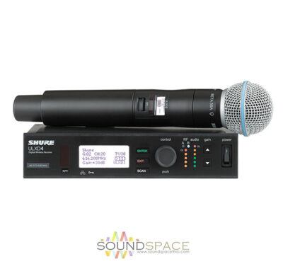 Shure ULXD24/B58 digital wireless handheld microphone system bundle comes with everything you need get great-sounding vocals and total wireless freedom, including a ULXD4 digital wireless receiver and a ULXD2 handheld transmitter with a Beta 58A dynamic microphone capsule.