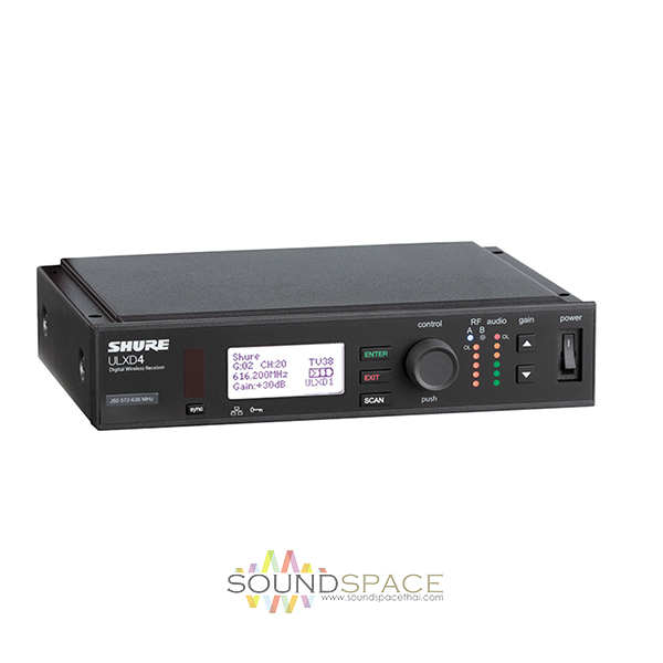 • Shure’s ULXD4 digital wireless receiver features a large LCD screen, networkable configuration, and premium audio output