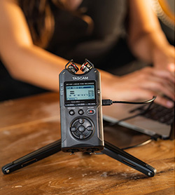 The DR-40X Four-Track Digital Audio Recorder and USB Audio Interface from Tascam is the latest generation of professional handheld recorders and is the successor to Tascam’s popular DR-40 recorder. The DR-40X features a pair of high-quality unidirectional stereo condenser microphones with variable X/Y or A/B configuration can be used to capture audio for voice recordings, dictations, meetings, and live music recording applications.