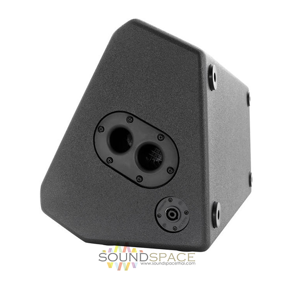 The TMS122M includes internal M10 threaded rigging points for permanent installation, a dual-angle pole mount socket for high or low height use with 35 mm poles/speaker stands to optimise audience coverage, and durable handles for easy transport. The dual angle wedge shape design also enables the TMS122M to be utilised in low profile stage monitor applications where improved audience line of sight is of paramount importance. Two Neutrik speakON* NL4 connectors are provided for input and link connections to additional enclosures.