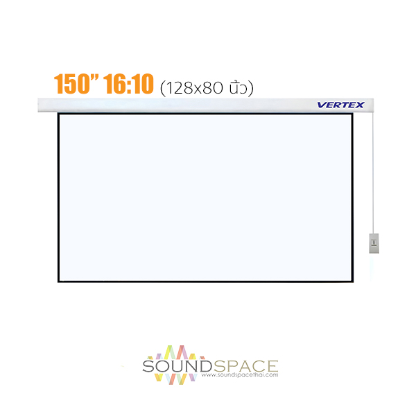 จอรับภาพจากเครื่องฉายโปรเจคเตอร์แบบมอเตอร์ไฟฟ้า VERTEX ขนาดเส้นทะแยงมุม (Diagonal) 110 นิ้ว อัตราส่วน 16:10 โดยมีความกว้าง (ความสูง) และความยาวของจอ 80 x 128 นิ้ว หรือ 202 x 324 เซ็นติเมตร เนื้อจอรับภาพ (Fabric) แบบ Matt White