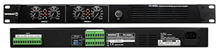 PA 4500 L integrates various protections such as short circuit, thermal, ultrasonic and RF. Its inputs and outputs are connected by Euroblock connectors and it has dimensions of 1 HU rack 19”