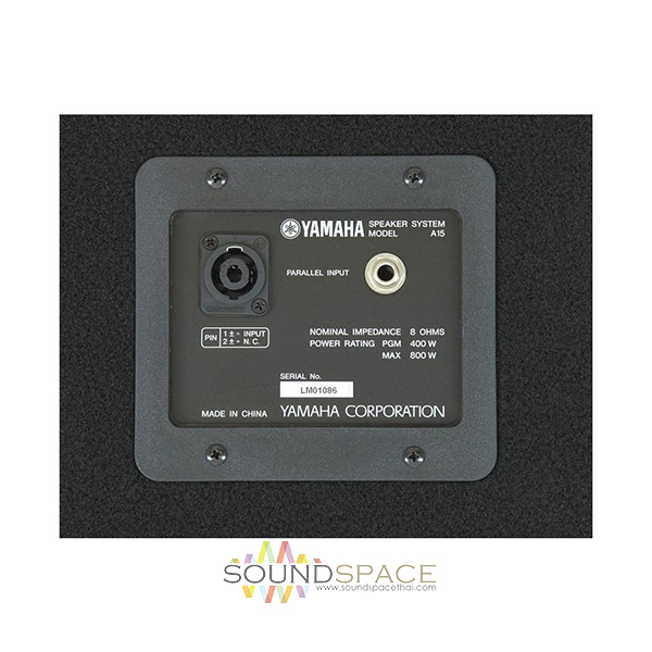 ลำโพงแบบไม่มีกำลังขยายในตัว YAMAHA A15 เป็นตู้ลำโพง 2 ทาง passive speaker, Bass reflex, trapezoidal cab, ขนาดดอกลำโพง 15 นิ้ว LF Driver, เสียงแหลม 1″ diaphragm high-frequency horn, ทนกำลังขับสูงสุด 800 วัตต์ ( MAX ), ตอบสนองความถี่ 50 Hz – 20 kHz
