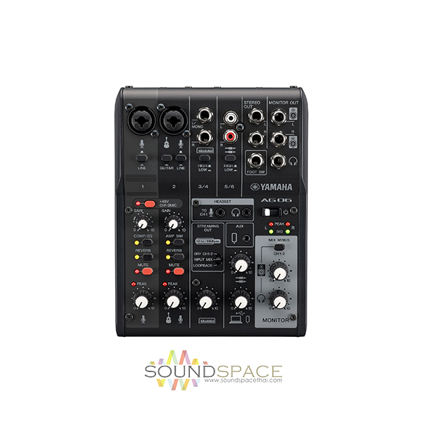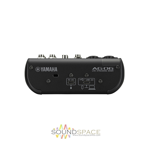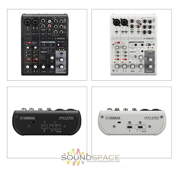 เครื่องผสมสัญญาณเสียงสำหรับงานสตรีมมิ่ง Yamaha AG06MK2 เป็นมิกเซอร์แบบ 6 ชาแนลพร้อมออดิโออินเตอร์เฟส, 2-Mic/Line Combo Inputs, Two 1/4″ Line Inputs, Two RCA Inputs, 3.5mm TRRS In/Out for Smartphone, 24-bit/192kHz Resolution and Built-in DSP, มี2สี สีดำและสีขาว