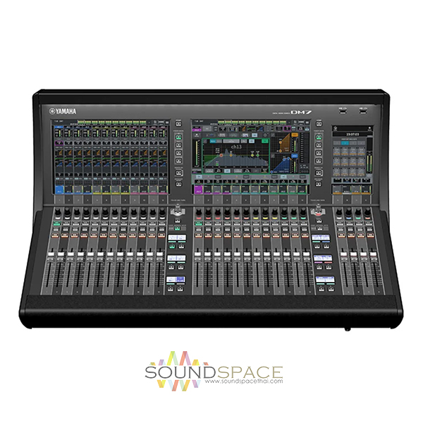มิกเซอร์ดิจิตอล YAMAHA DM7 120-channel, Dual-bay Digital Mixer with 32 Mic Preamps, 28 Motorized Faders, 2 x 12″ Touchscreens, 1 x 7″ Touchscreen, 18-in/18-out Audio Interface, 144-in/144-out Dante Interface, and AI Assist